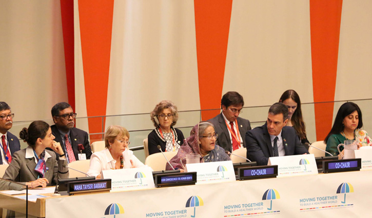 প্রধানমন্ত্রী সোমবার নিউইয়র্কে জাতিসংঘ সদরদপ্তরের ইকোসোক চেম্বারে সার্বজনীন স্বাস্থ্য কর্মসূচি (ইউএইচসি)’র ওপর উচ্চ পর্যায়ের বৈঠকের পাশাপাশি ‘মাল্টি স্টেকহোল্ডার প্যানেল’ শীর্ষক একটি অনুষ্ঠানে সহ-সভাপতিত্ব করছিলেন।