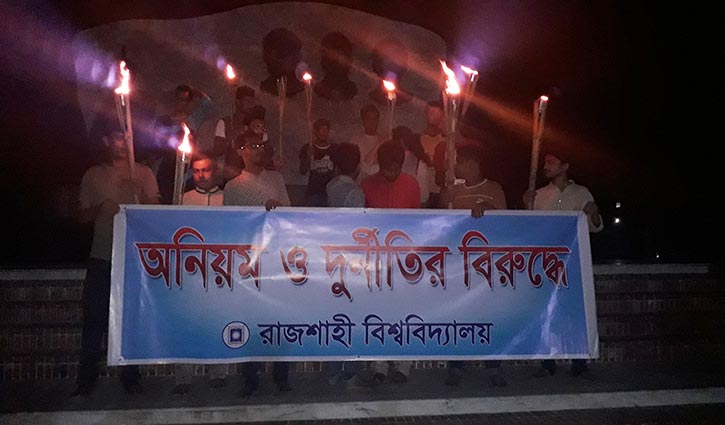 অনিয়ম ও দুর্নীতির বিরুদ্ধে শিক্ষার্থীদের মশাল মিছিল