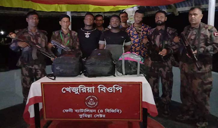 বিজিবি সূত্র জানায়, গোপন সংবাদের ভিত্তিতে রাত সাড়ে ৯টার দিকে সীমান্ত পিলার ২১৮১/৫-এস এর কাছে (শূন্য লাইনে) ফেনীর ফুলগাজী উপজেলার হাড়িপুস্করনী এলাকা দিয়ে অবৈধভাবে ভারতে প্রবেশের চেষ্টা করছিল তিন নাইজেরীয়। এসময় ফেনী-৪ বিজিবি আওতাধীন ফুলগাজী এলাকার খাজুরিয়া বিওপির টহল দল তাদের আটক করে।