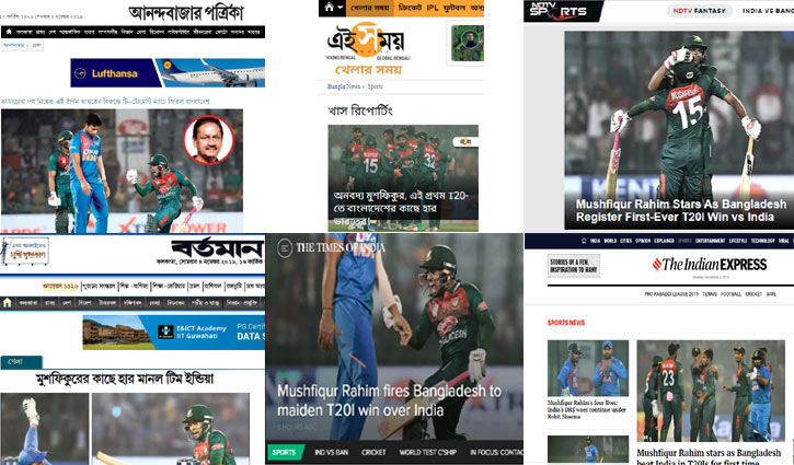 ভারতের জনপ্রিয় টাইম অব ইন্ডিয়া মুশফিককে টেনে শিরোনাম করেছে, ‘Mushfiqur Rahim guides Bangladesh to maiden T20I win against India. (মুশফিকুর রহিম ভারতের বিপক্ষে বাংলাদেশকে প্রথম টি-টোয়েন্টি জয় এনে দিলেন’।
