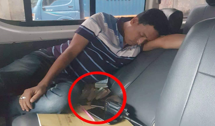 ভাইরাল হওয়া ছবিতে দেখা যায় গাড়ির সিটে অনেকগুলো টাকার বান্ডিল। টাকার সাথে রয়েছে দুটি মোবাইল ফোন ও ওয়ারলেস। ওই টাকার উপর গাড়ির সিটে ঘুমিয়ে পরেছেন জেলা গোয়েন্দা পুলিশের এস আই আরিফুল ইসলাম।