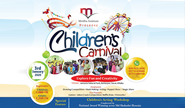 নিউজ ডেস্কবাংলাদেশে প্রথমবারের মত শিশুদের জন্য ‘শিশু কার্নিভাল’ এর আয়োজন করতে যাচ্ছে মৃধা ইন্সটিটিউট।