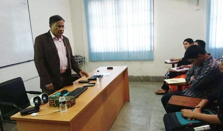 বুধবার বিভাগের চতুর্থ বর্ষের শিক্ষার্থীদের ক্লাস নিয়েছেন তিনি। পরে ফেইসবুকে তার ফেইজে শ্রেণিকক্ষে ক্লাস নেওয়ার কয়েকটি ছবি আপলোড করা হয়।