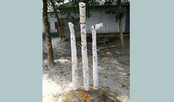 শুক্রবার সকালে নিজেদের তৈরি কলা গাছের এই শহীদ মিনারের বেদিতে পুষ্পার্ঘ্য অর্পণ করে তারা। এর আগে বৃহস্পতিবার দিনভর ওই বিদ্যালয়ের ক্ষুদে শিক্ষার্থীরা তৈরি করেন এ শহীদ মিনার।