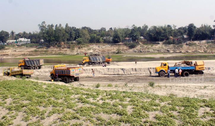 নদী থেকে বালু উত্তোলন: হুমকির মুখে সেতু-মহাসড়ক