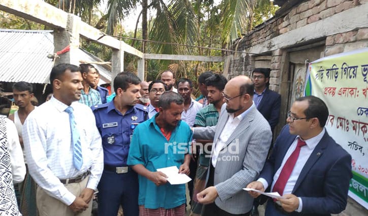 বাড়িতে গিয়ে ভূমি সচিবের ক্ষতিপূরণের চেক বিতরণ
