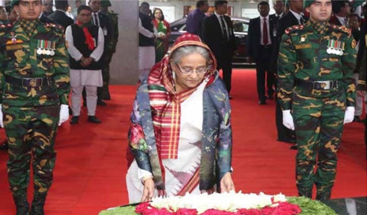 বঙ্গবন্ধুর প্রতিকৃতিতে প্রধানমন্ত্রীর শ্রদ্ধা