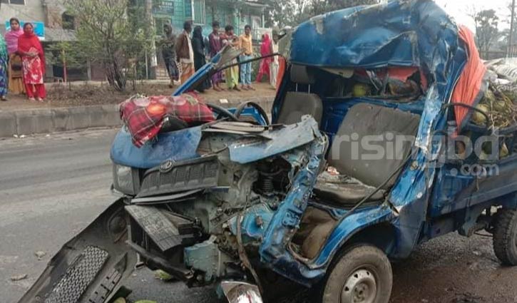 এসআই মো. সারোয়ার হোসেন ও স্থানীয়রা জানান, সকাল ৬টার দিকে ঢাকাগামী সবজিবাহী এক পিকআপ মহাসড়কে দাঁড়িয়ে থাকা এক ট্রাকের পেছন দিক দিয়ে সজোরে ধাক্কা দেয়। এতে পিকআপের সামনের অংশ দুমড়ে-মুচড়ে যায়।