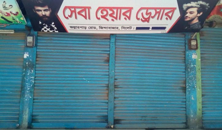 জল্লারপার রোডের ‘সেবা হেয়ার ড্রেসার'। এই সেলুনও বন্ধ রয়েছে ২৬ তারিখ থেকে। সেলুনের ম্যানেজার জানালেন, সেলুন বন্ধ। খোলার সরকারি নির্দেশনা আসা পর্যন্ত তারা খুলবেন না। কিন্তু টানা বন্ধ থাকায় তারা খুবই অর্থকষ্টে আছেন।