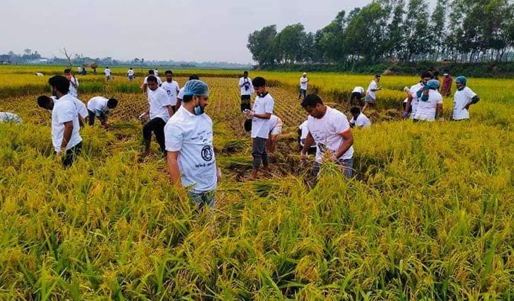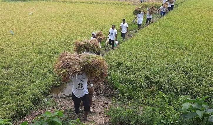 নরসিংদীতে কৃষকের ধান কেটে দিলো ছাত্রলীগ