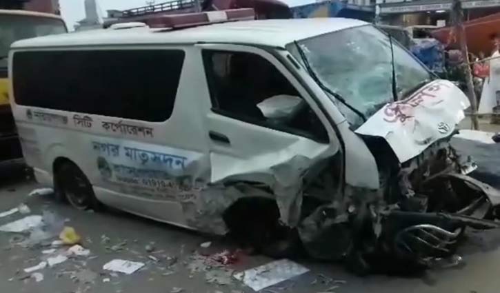 মঙ্গলবার (২৬ মে) বিকেলে দুর্ঘটনা ঘটে। পুলিশ নারায়ণগঞ্জ সিটি কর্পোরেশনের অ্যাম্বুলেন্সটি আটক করেছে। তবে চালক পালিয়ে গেছে।