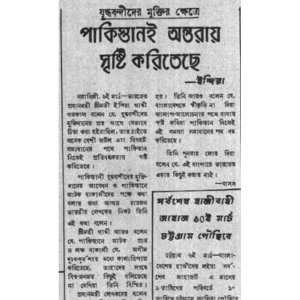 (বিভিন্ন সংবাদপত্রে প্রকাশিত তথ্যের ভিত্তিতে বঙ্গবন্ধুর সরকারি কর্মকাণ্ড ও তার শাসনামল নিয়ে মুজিববর্ষ উপলক্ষে ধারাবাহিক প্রতিবেদন প্রকাশ করছে বাংলা ট্রিবিউন। আজ পড়ুন ১৯৭৩ সালের ৬ মার্চের ঘটনা।) যুদ্ধবন্দিদের মুক্তির ক্ষেত্রে পাকিস্তানই অন্তরায় সৃষ্টি করছে বলে মনে করেন ভারতীয় প্রধানমন্ত্রী ইন্দিরা গান্ধী। তিনি বলেন যে, ‘যুদ্ধবন্দিদের মুক্তিদানের প্রশ্ন আগে যেভাবে চিন্তা করা... বিস্তারিত