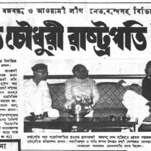 (বিভিন্ন সংবাদপত্রে প্রকাশিত তথ্যের ভিত্তিতে বঙ্গবন্ধুর সরকারি কর্মকাণ্ড ও তার শাসনামল নিয়ে মুজিববর্ষ উপলক্ষে ধারাবাহিক প্রতিবেদন প্রকাশ করছে বাংলা ট্রিবিউন। আজ পড়ুন ১৯৭৩ সালের ৮ এপ্রিলের ঘটনা।) ১৯৭৩ সালের এইদিনে সংবিধান অনুযায়ী বিচারপতি আবু সাঈদ চৌধুরী বিনা প্রতিদ্বন্দ্বিতায় বাংলাদেশের রাষ্ট্রপতি নির্বাচিত হন। প্রধান নির্বাচন কমিশনার বিচারপতি আবু সাঈদ চৌধুরীকে রাষ্ট্রপতি ঘোষণার কিছুক্ষণ পরই... বিস্তারিত